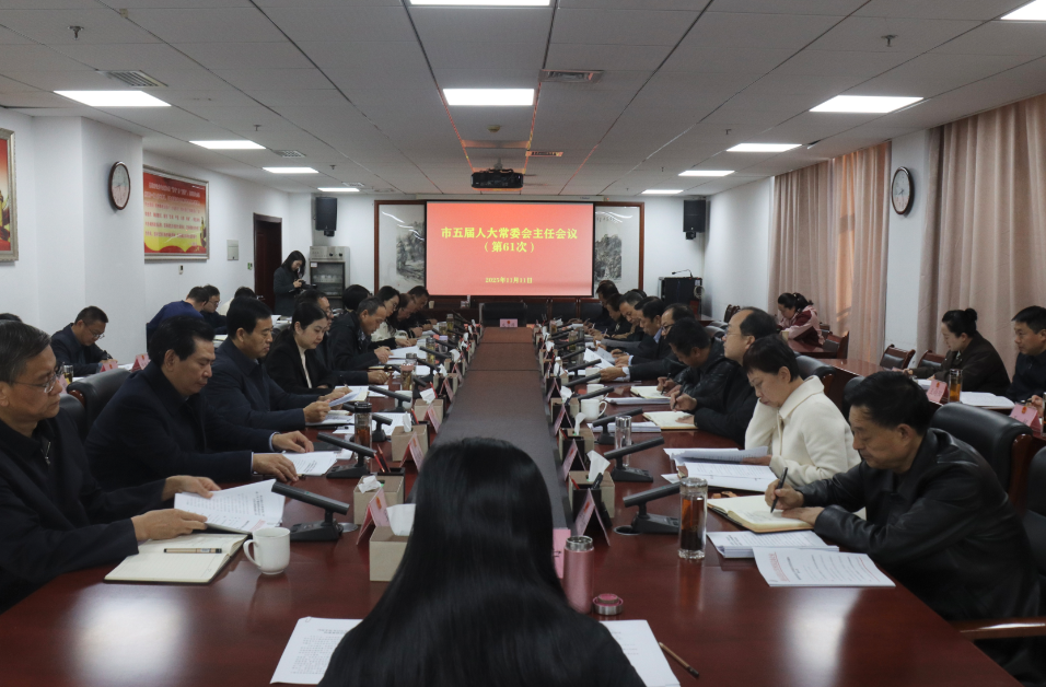商洛新闻网讯:11月11日,市五届人大常委会召开第六十一次主任会议。市人大常委会主任陈宁主持会议,市人大常委会副主任赵军、李旭光、袁良善、赵水利和秘书长石康君出席。