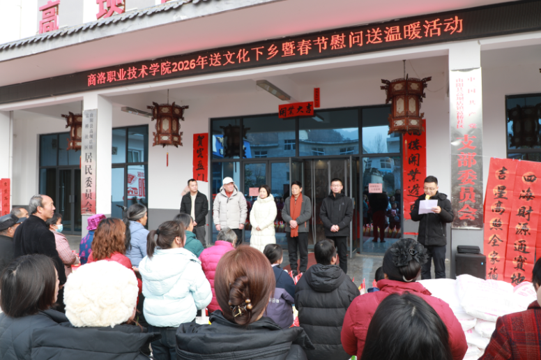 商洛新闻网讯:128日,在新春佳节来临之际,商洛职业技术学院赴山阳县高坝店镇富桥社区,开展2026年送文化下乡暨春节送温暖慰问活动为社区送去粮油100余份、春联400多幅,将学院的深情关怀与节日祝福精准送达社区困难群众及驻村干部手中。