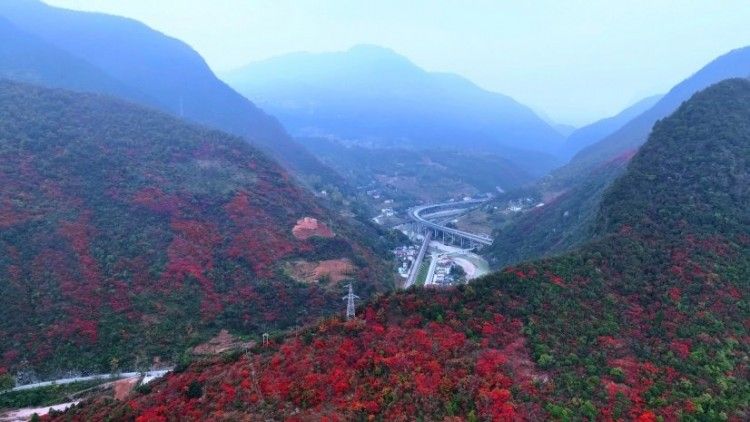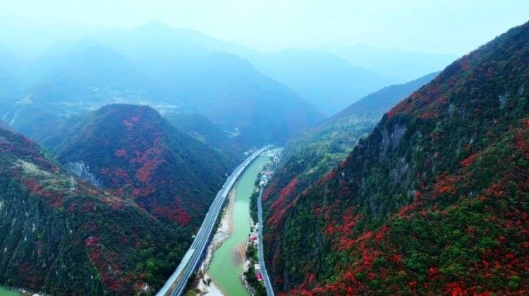 沿着211国道从镇安县城驶向青铜关镇,仿佛驶入了一幅斑斓的秋日画卷。连绵山峦被火红、明艳的秋叶点染,层林尽染间,一条公路蜿蜒穿梭于峡谷之中,与碧绿的河流并行,在五彩山林的怀抱里延伸向远方。云雾轻笼的远山朦胧似幻,宛如一幅浓墨重彩的山水画卷,每一处景致都在诉说着秦岭深秋的独特韵味。