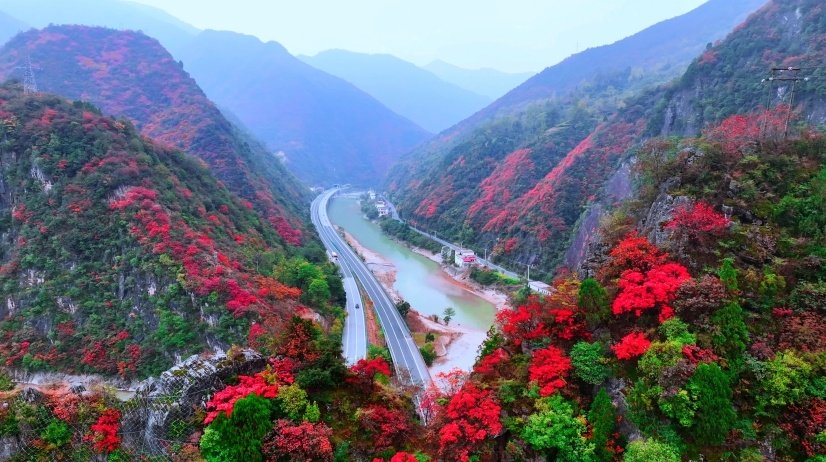 沿着211国道从镇安县城驶向青铜关镇,仿佛驶入了一幅斑斓的秋日画卷。连绵山峦被火红、明艳的秋叶点染,层林尽染间,一条公路蜿蜒穿梭于峡谷之中,与碧绿的河流并行,在五彩山林的怀抱里延伸向远方。云雾轻笼的远山朦胧似幻,宛如一幅浓墨重彩的山水画卷,每一处景致都在诉说着秦岭深秋的独特韵味。全文